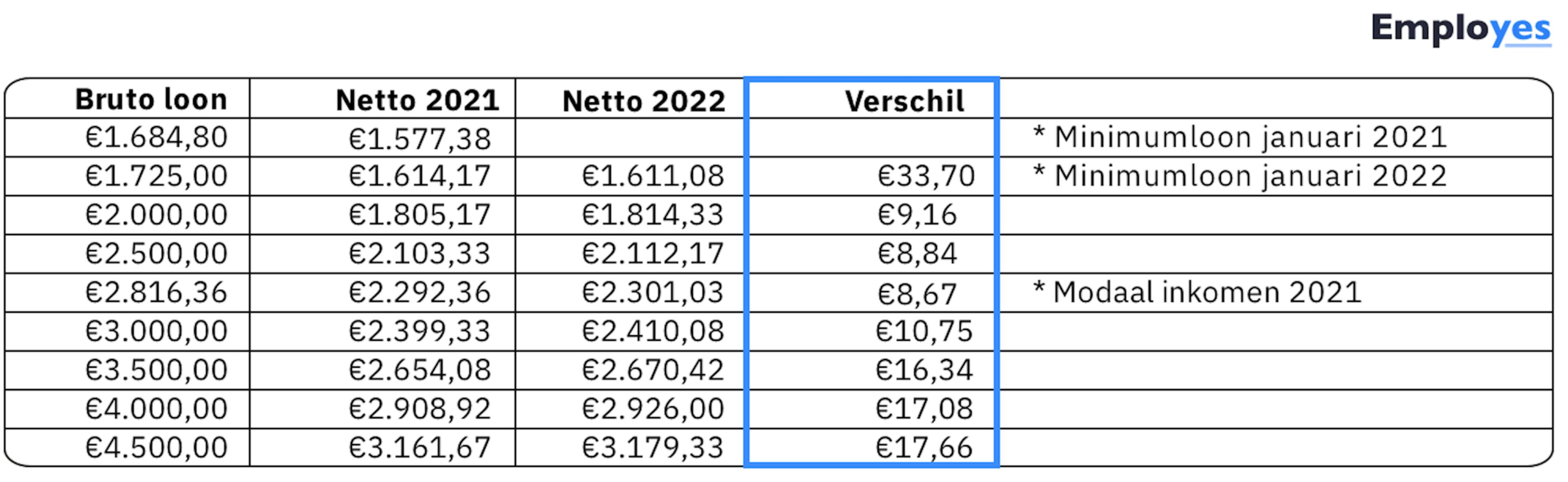 Hoe ziet het nettoloon er in 2022 uit ten opzichte van 2021? Gaan we er netto op vooruit? Dit hebben we onderzocht in Employes. Hierbij hebben we onder andere gekeken naar de minimumlonen en naar het modaal inkomen.