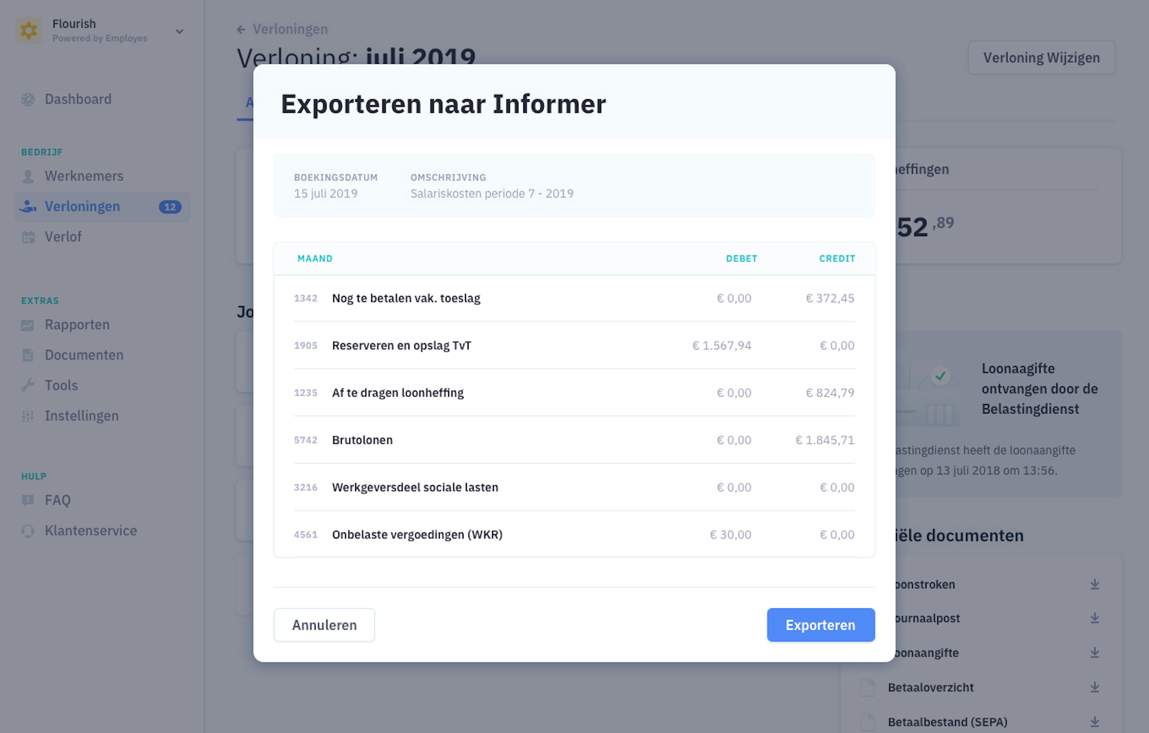 Na het doen van een verloning, dienen de kosten van je personeel verwerkt te worden in de boekhouding. Dat kun je doen door handmatig een memoriaalboeking te maken in Informer. Het overtypen van de journaalposten kan een tijdrovend klusje zijn, maar met Employes niet meer! De koppeling tussen Employes en Informer zorgt er namelijk voor dat de journaalposten automatisch aangemaakt worden.